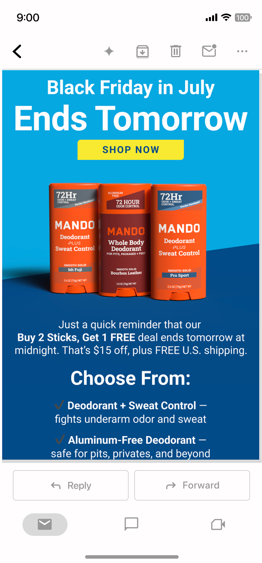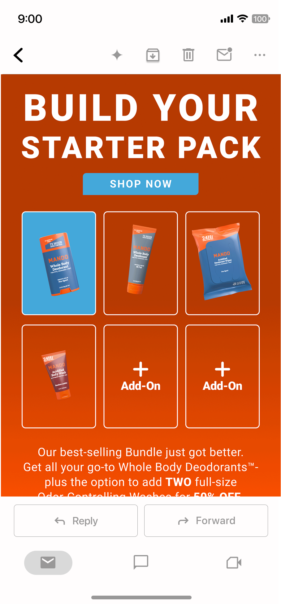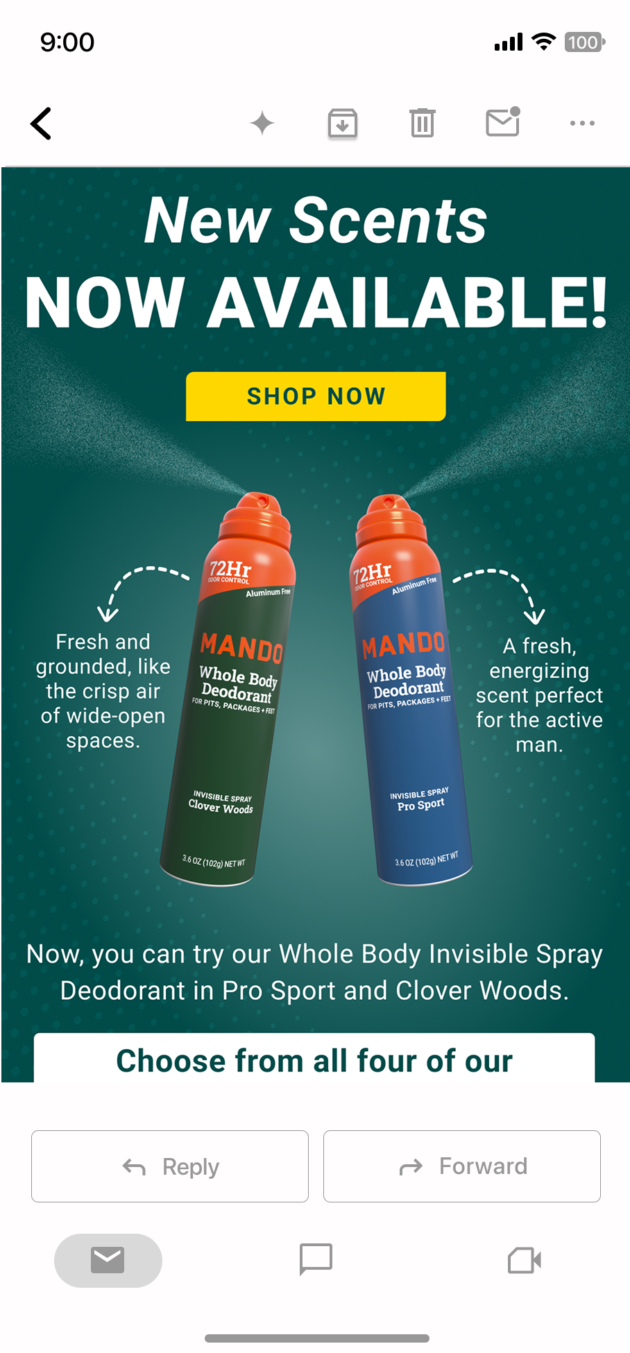 A high-impact launch series designed to reinforce a single powerful message: Mando now controls odor and sweat. Each email echoed the same core story across bold visuals and varied layouts to build recognition, drive trust, and meet customers wherever they were in the funnel.