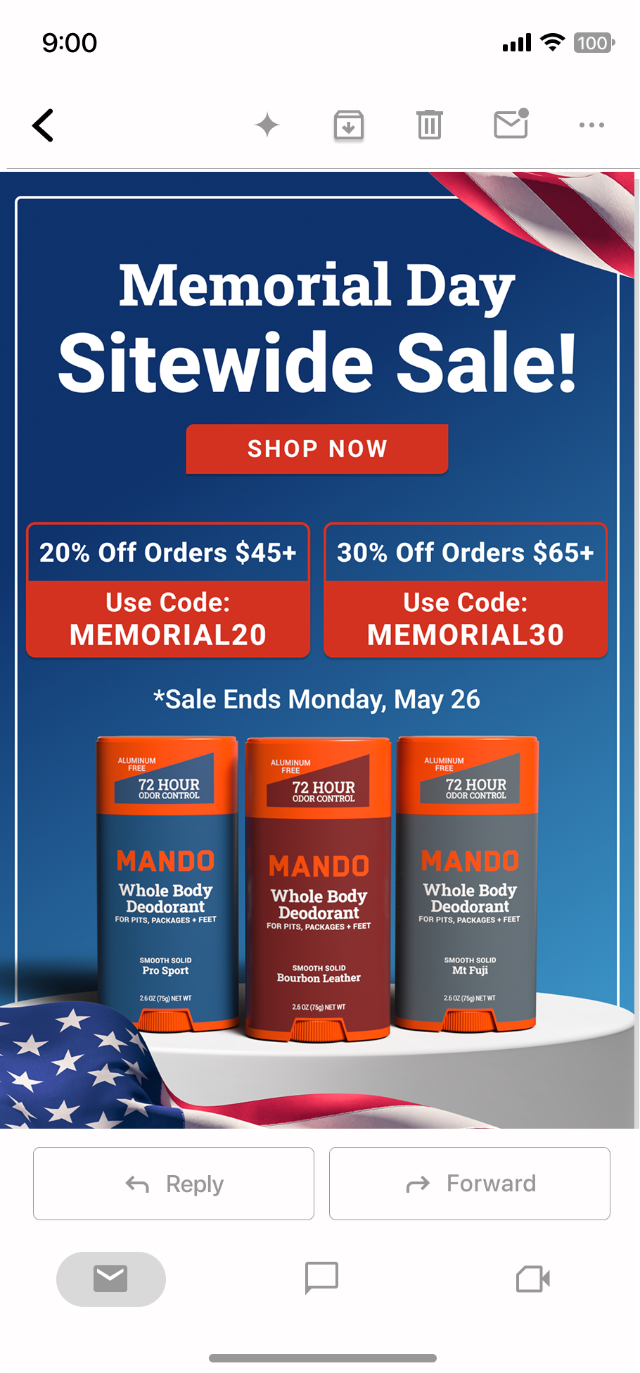 A patriotic campaign tailored to resonate with Mando’s core audience—hardworking, American-made values front and center. The design leaned into bold red, white, and blue visuals with messaging that honored the holiday while driving urgency around limited-time offers.